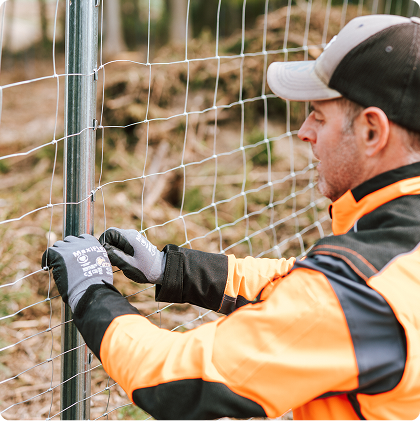 Dank durchdachtem System und passendem Zubehör ist der Wildzaun im Handumdrehen montiert – ganz ohne Spezialwerkzeug.